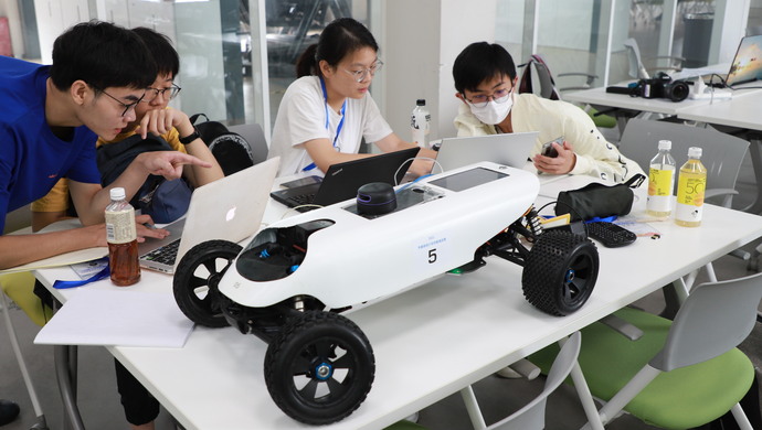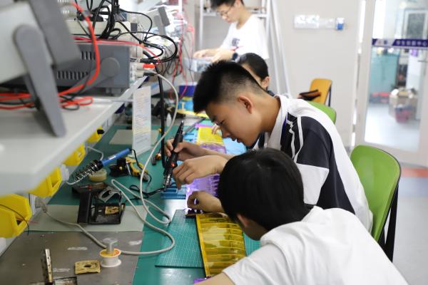 而在暑期,学森计划创新挑战营则依托上海交通大学学生创新中心和相关课程学院开展,7个课程模块包括电子创意实践、设计&智造创新方法、平直翼无人机设计制作、无人机编程与编队飞行、vex机器人设计与开发、智能语音交互、无人车实践等,让学生实战操作,手、眼、脑并用。