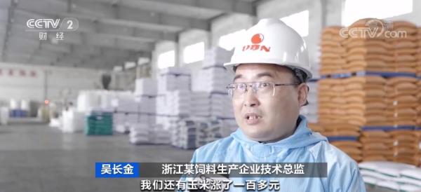 浙江某饲料生产企业技术总监 吴长金:二十来天每吨涨了一千元,玉米涨了一百多元,因为我们玉米、豆粕占了饲料配方组成大概80%,所以整个来讲,我们饲料成本每吨增加了300-400元。
