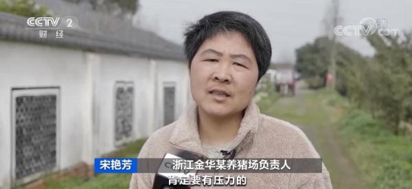 浙江金华某养猪场负责人 宋艳芳:肯定有压力,猪70%的成本就是饲料,它现在涨,我们成本就增加了很多,增加10%肯定是有的。