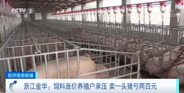 浙江金华某养殖场负责人 邵康为:饲料的涨价,我们的成本要达到每斤8.5元,但是目前我们整个市场的售价只有每斤7.5元,所以我们两百斤的猪,一头猪就要亏200元。