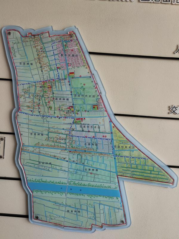 百余平方米的浦东新区老港镇大河村乡村振兴展示厅,由闲置仓库改建而成。在这里,一个大沙盘上,清晰地展示着大河村核心区周围被成片的雪菜种植地、瓜果种植地、蔬菜种植地等包围着。大河村总面积达3.84平方公里,其中耕地面积3069亩,种植以稻谷、瓜果、蔬菜为主。