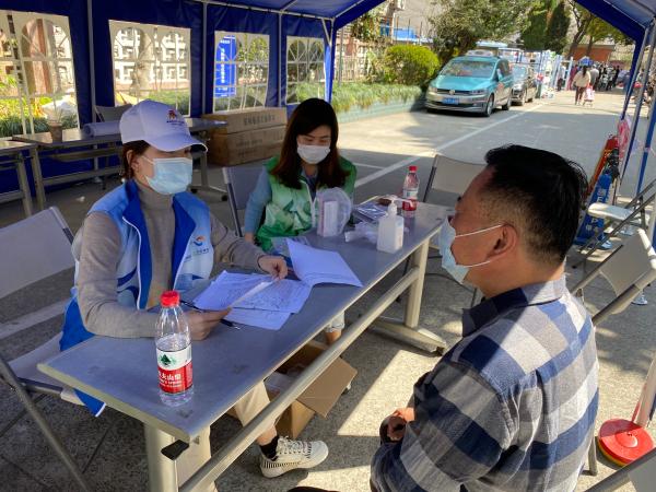 在国定路小区,许多普通居民自发走出家门当起志愿者。一名住在小区里的杨浦中心医院护士王晨,第一时间就加入了现场风控组支援;铁路局退休老工人拱宁,没日没夜地跟居委干部一起“扫楼”;五角场派出所民警许捷经常帮忙宣传和维护秩序;机关干部姚梦萧负责小区内3个楼栋的居民信息排摸,汗水湿透了防护服,解释得口干舌燥说不出话了仍在坚持……