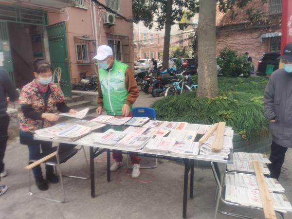 “买菜摊”旁边还有一个“报刊摊”。小区里很多老年居民每天都有订报读报的需求。“封闭管理的第一天,就有不少老人急着要往外面信箱去拿报纸,我们耐心解释后发现,小区里的订报量确实很大。”居民志愿者夏师傅就在小区里支起一个小摊,把小区订阅的报纸都集中起来。