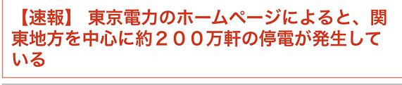 东京电力公司发布消息说,截至17日零时,该公司辖区内有209万用户停电。另据东北电力公司发布的消息,截至17日零时10分,宫城县、福岛县、岩手县、青森县、新潟县有15.6万用户停电。