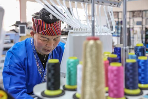 近年来,贵州省黔东南苗族侗族自治州施秉县重点培育特色苗族刺绣产业园,引进特色民族文化加工企业6户,集刺绣“研、产、销”、非遗文化传承、旅游观光于一体,园区采取“公司+实训+农户”的模式,有效带动2000余名农村和易地扶贫搬迁安置区苗族妇女增收致富,助力乡村振兴。