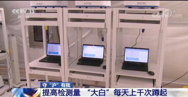 画面中医疗工作者蹲着观察数据,其实这是在通过数据组成的曲线来判断核酸检测结果是否为阳性。湖南省援沪的先遣医疗队在四月初就抵达了位于嘉定的上海凤凰实验室,助力开展核酸检测工作。在临时搭建的方舱和气膜实验室中,为了能让检测量增大,医疗队的“大白”们都会尽量往里面多放一些仪器。2舱气膜实验室、60平方米扩增区、62台扩增仪连续运转,第一层只能跪着看才能看到曲线结果,最高一层需要拿个凳子垫脚,不然看不到。每个队员每个班次需要重复起身、俯身,这样的动作每天要重复上千次。