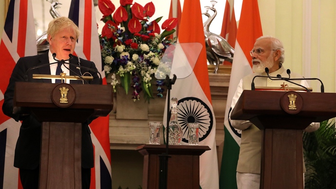 4月21日起,鲍里斯·约翰逊带着以安全、贸易为重点的愿望清单,首次以英国首相身份访问印度。22日,英印共同签署一项防务协议,同意建立更紧密的安全关系,包括简化武器采购流程、帮印度造战机等。