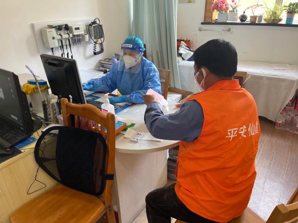在整个代配药流程中,院感与防控工作仍然是重中之重。为了巩固辖区“动态清零”的成效,中心与街道、居委共同合作,把牢防疫关和补充“药盒子”两不误。目前,每周三次代配药门诊分批解决各居民区配药需求,做到一周辖区居委全覆盖。同时,在门诊区域规划好代配药人员就诊路线,做好导诊与一米线分隔,减少不必要的区域流动。