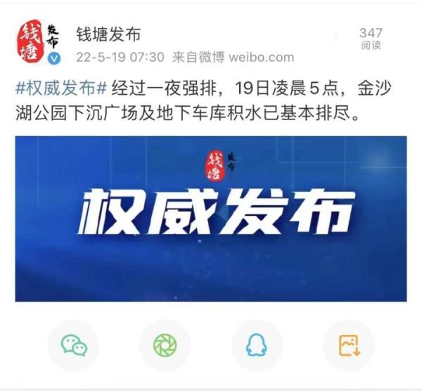 另据央视新闻报道,今天早上6时40分,杭州市钱塘区金沙大道与海达南路交叉口已恢复正常通行。