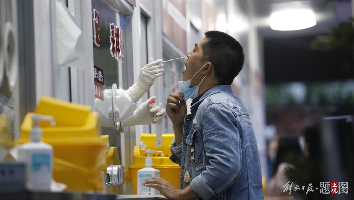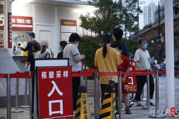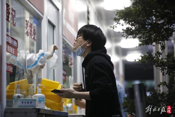 5月31日,长征医院常态化核酸检测点,24小时不间断服务。大量市民和服务保障人员前来进行检测。