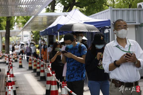 5月31日,位于普陀区兰溪青年公园内的核酸检测点,大量市民前来检测,高峰时站点前排出近千人的长队。