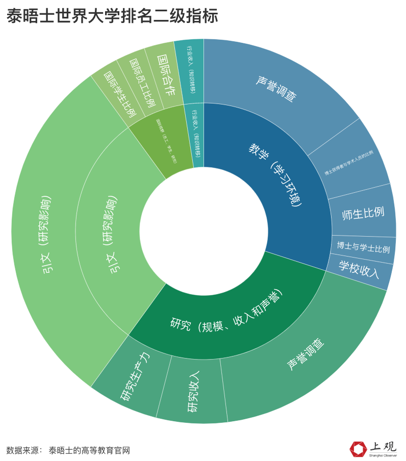 泰晤士官网所提到的数据源与qs基本相似。泰晤士的声誉调查(学术)统计了全球 22,000 份问卷回复,以评估大学在教学和研究方面的权威,声誉调查(研究)则采用了同样的方式。