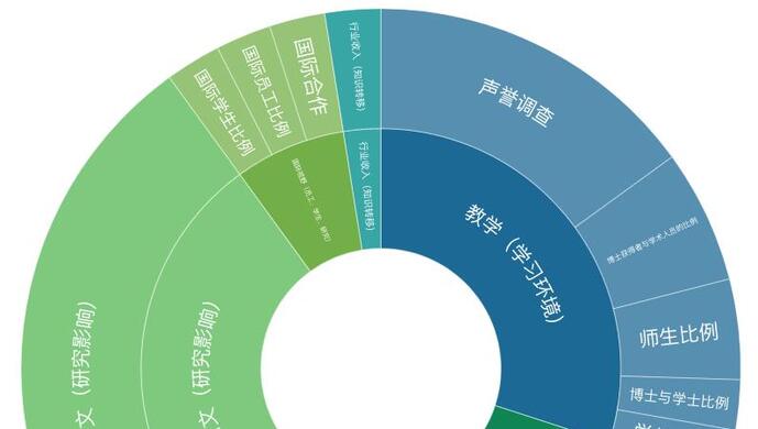qs全球大学排名主要根据学术声誉、教师人均引用、师生比例、雇主声誉、国际学生比例以及国际教师比例六个一级指标进行评估。其中学术声誉所占权重最高,达40%。其次则是师生比例和每个教师的引用量,分别占20%。qs的官网表示,将教学质量作为最重要的指标很难衡量,而认为教师和学生的比例是衡量教学质量最为有效的替代指标,而每个教师的引用量则是学校研究成果的体现。