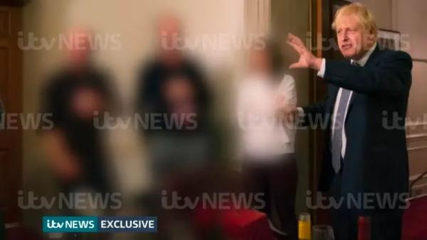 近日被曝光的约翰逊“告别派对”饮酒照。图源:英国itv news