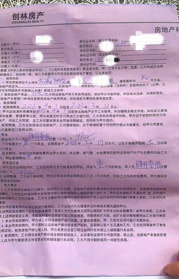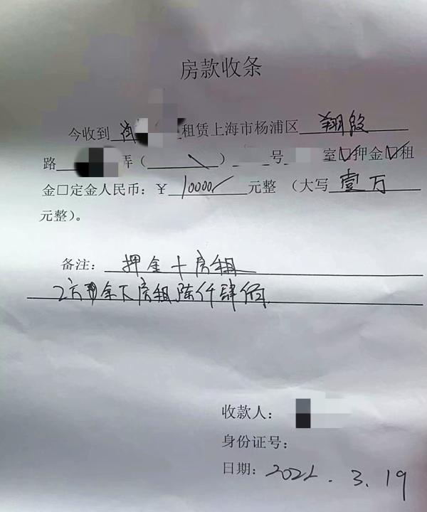 从事餐饮服务业的肖小姐说,自己先前租住宝山一小区。因工作需要,今年3月19日,她与房东签订租赁协议,租下杨浦区翔殷路某弄一室户,自4月1日起至明年3月31日租期一年,月租金4100元。首次付三(个月)押一(个月),共计16400元。肖小姐当场支付了1万元现金,房东在收条上签字确认。