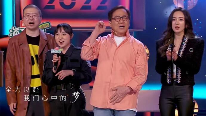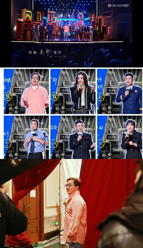 杨幂和成龙也出现在兰心大戏院参加《怎么办!脱口秀专场》。杨幂和李诞一样,父亲都是警察。而成龙拍摄电影《警察故事》迄今快有40年。脱口秀录制暖场,主持人卖了一个小小的关子,他反复问观众,“我们请到了成龙,大家信不信?”几百位观众中,只有一人始终举手坚信有成龙。随着成龙出现在兰心大戏院,全场爆发热烈掌声。成龙说,“我已经到了走楼梯而不是跳下楼梯的年纪,但警察故事永远没有停止,因为我们周围有守护所有人的警察。”