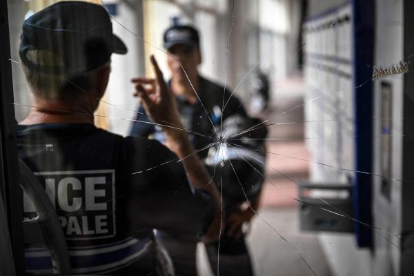 6月15日,法国里昂,警察正在案发现场巡逻。