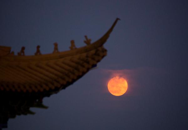 这是6月14日在江西省九江市都昌县南山公园拍摄的“超级月亮”。
