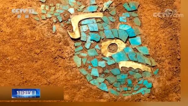 而这种把黄金打制成薄片用于装饰的方法,仅仅是三星堆独有的现象吗?专家介绍,其实,在郑州商城、湖北盘龙城和安阳殷墟等遗址出土的文物中,这种装饰方法都有发现。它们往往附着在漆木器、青铜器表面进行装饰。比如,盘龙城出土的黄金就和绿松石一起做成绿松石金眼兽面,异常精美。