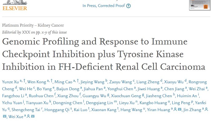 近日,上海交通大学医学院附属仁济医院泌尿科发表全国多中心临床研究论文,结果提示进展期延胡索酸水合酶(fh)缺陷型肾癌患者应用免疫联合靶向治疗方案疗效可观。研究于6月15日在线发表于泌尿外科领域铂金期刊《欧洲泌尿外科杂志》(european urology,影响因子20.096),作者团队同期针对联合治疗策略配发了述评,这一研究发现为罕见肾癌亚型患者的治疗提供了新的思路。