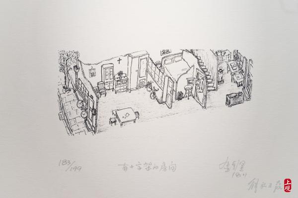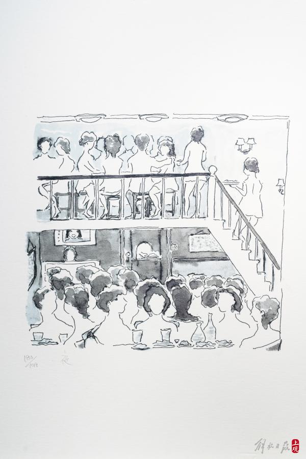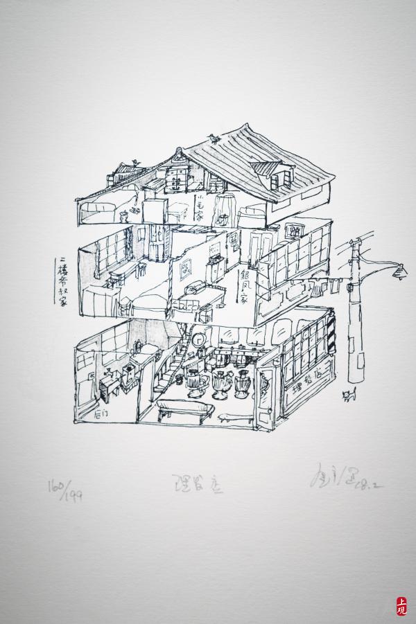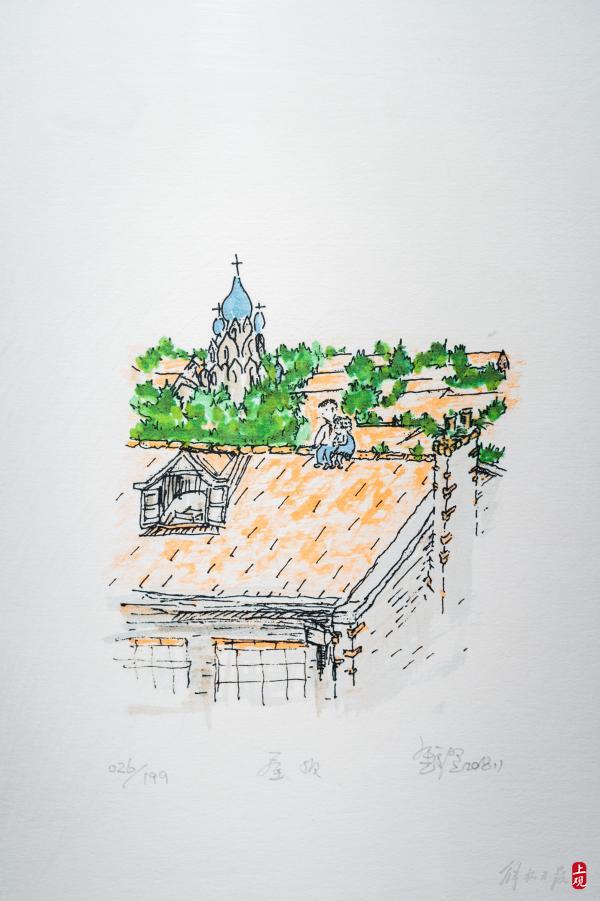 进贤路的餐厅,卢湾区的老房屋顶,“阿毛”家的住所,金宇澄笔下的细致描写,被建构起具体的画面,带有作者官方定义的权威性,也因此有了许多供书迷赏玩的趣味性。这些作品中也可以看出,金宇澄的画绝非玩票,透视、笔触、构图、气氛的抓取都十分准确老到。