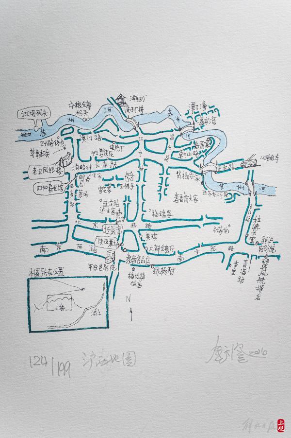 金宇澄的《沪西地图》上标注的是大量与书中情节、人物息息相关的各种地标。从这张地图上,也可以看到一部细节丰满的著作背后有多少实证的功课。