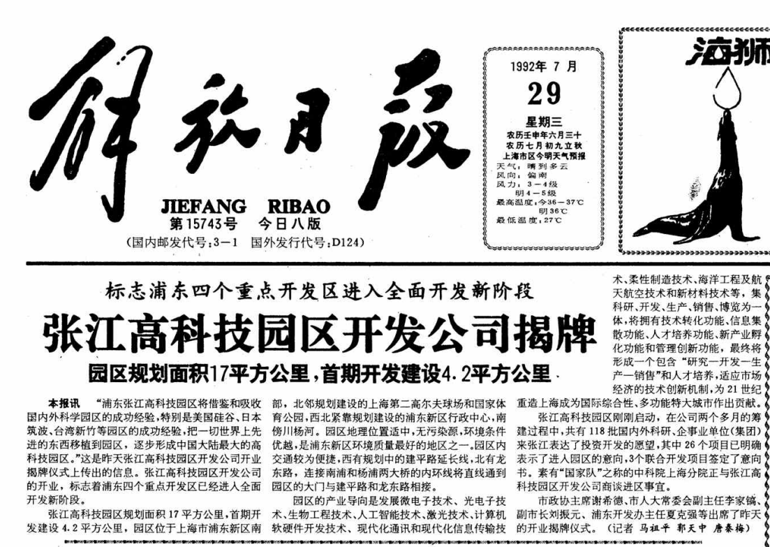 陆勤至今记得,开园那天不时飘过的草药香。“当时条件艰苦,开发公司租了童涵春药厂的场地办公,揭牌仪式就在食堂举行。天特别热,但也比不过会场的热烈气氛。”1992年7月28日,张江高科技园区开园,为浦东开发开放走在前列披坚执锐。