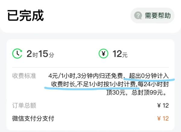 该消费者告诉记者,巧合的是,她在2019年使用过同一家共享充电宝品牌的充电宝,时间同样是2小时15分钟,收费是10元。“每小时收费的标准是一样的,不同的是,2019年的收费规则是超出5分钟计入收费时长,不足30分钟按30分钟计算。现在的规则是,超出0分钟就计入收费,按1小时的价格来收。”