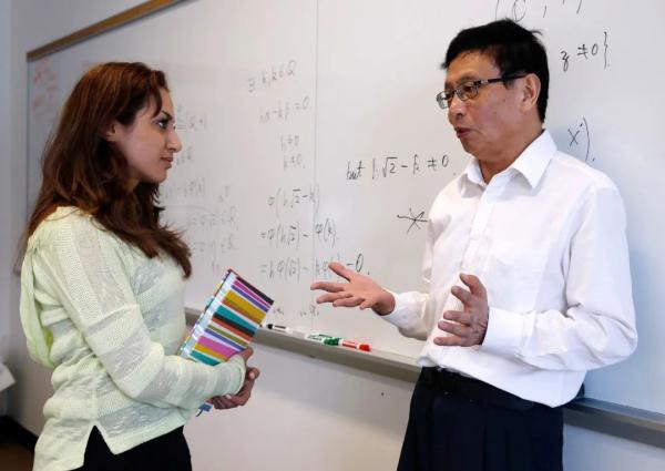 ·张益唐在美国和学生讨论问题。