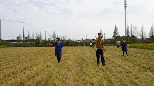 前不久的秋末冬初时节,在沪郊枫泾镇中洪村,一片正在收割的稻田里,记者见到了一群欢乐的年轻人——