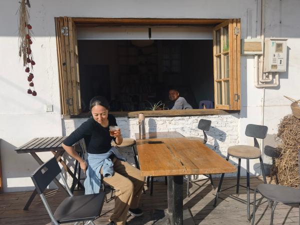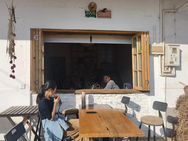 记者第二次造访时,是在深秋的午后。走过村中弯弯绕绕的小巷,进入一个寻常而老旧的农家宅院:阳光斜照在大木窗内外的桌案上,以及远远分坐着的几个年轻人身上,显得格外安宁,他们各自静静坐着,有的在喝茶,有的在看书,有的在发呆。这是媛媛家,也是这个群落的“会客厅”。