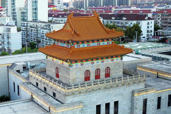 此建筑有几大亮点:一是大堂屋顶彩绘,部分彩绘是原件,其他彩绘按原件复制。二是红缸砖地面。上千片地砖从20世纪30年代保留至今。早前地下排的是暖气通道,现在改成空调管道,管道铺设完毕后按照当时红缸砖的编号,再一一复原。三是二楼中厅的“孔雀门”,那时没有焊接,依靠铆钉将铁铆在一起,形如“孔雀开屏”。四是门楼为歇山二重檐形式,楼顶用明黄琉璃瓦覆盖,附以华丽檐饰,四周平台围上石栏杆,非常气派。