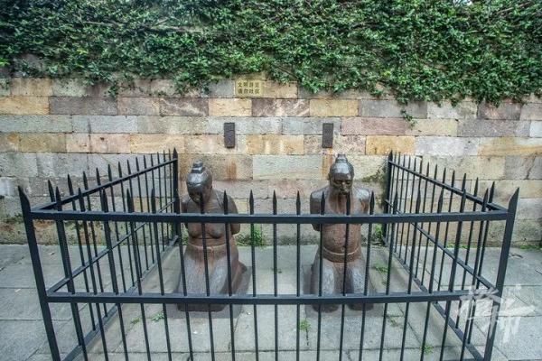 至此,“四奸”跪像作俯首就刑状于岳飞父子墓前。到了万历三十年(1602),范涞又来杭州为官,再复“四奸”跪像。现今陈放在岳王庙墓园区的“四奸”跪像为1979年根据河南汤阴岳飞庙的铁跪像重铸。