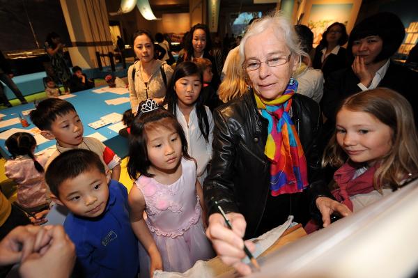 “‘哥德堡号’带我到中国”展上画家现场教小朋友绘画