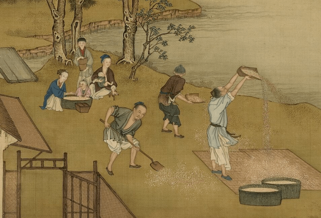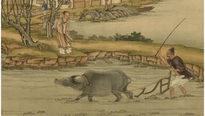 务农是古代中国最常见、最基础的劳动形态。“农”字的甲骨文形体为
