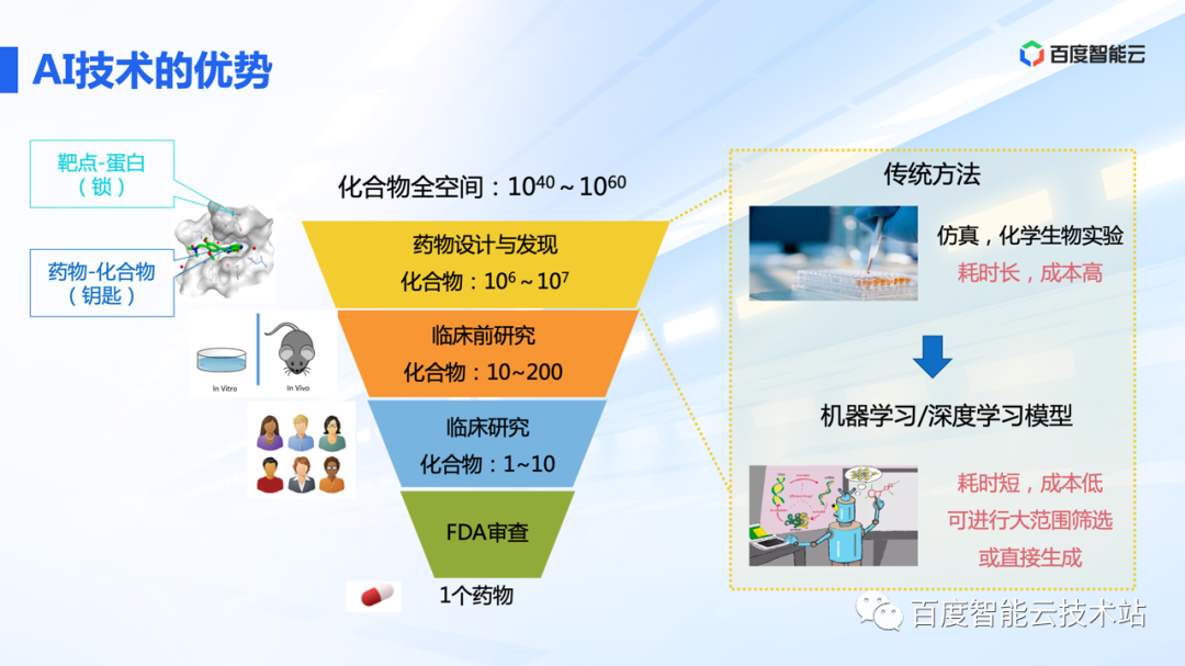 百度智能云相关人士认为,药物研发真实的高精度实验数据获取成本极高,且有实验的批次效应问题,公开的数据库有大量的无标注数据,如何利用好大量无标注数据和少量高精度数据,这就对模型构建提出了较高的要求。其次,生物领域的任务繁多且复杂,比如admet成药性预测任务,常用属性指标多达几十项,想要一个模型对几十项指标都预测准确,这对技术的泛化性和可迁移能力也有较高的要求。