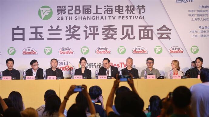 6月21日,由影视学者胡智锋领衔的电视剧类别评委会集体亮相第28届上海电视节白玉兰奖评委见面会。