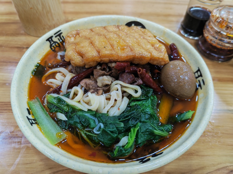午饭时间,邢迪点了碗板面,另加一两牛肉、一个卤蛋、一个豆排,只花了23元,他特意嘱咐老板多放辣椒。辣椒的香气激发出牛肉的鲜美,任何辅料都可以和板面完美融合,正如同石家庄这个包容却不起眼的城市,“板面不能多吃,一个星期最多一次,因为吃多了上瘾。”