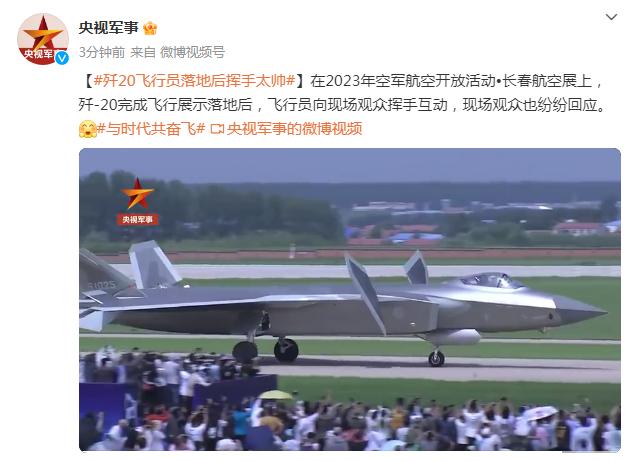 【歼20飞行员落地后挥手太帅】在2023年空军航空开放活动•长春航空展上,歼-20完成飞行展示落地后,飞行员向现场观众挥手互动,现场观众也纷纷回应。