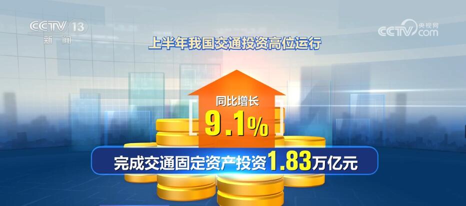 上半年,我国交通投资高位运行,完成交通固定资产投资1.83万亿元,同比增长9.1%。分方式看,铁路完成投资3049亿元,同比增长6.9%;公路完成投资13830亿元,同比增长8.9%,其中,高速公路、普通国省道、农村公路同比分别增长7.5%、13.6%和9.8%;水路完成投资936亿元,同比增长26.7%;民航完成投资462亿元,同比增长0.2%。