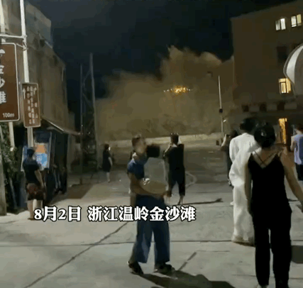 温岭金沙滩现10余米高巨浪。来源:浙江日报抖音视频
