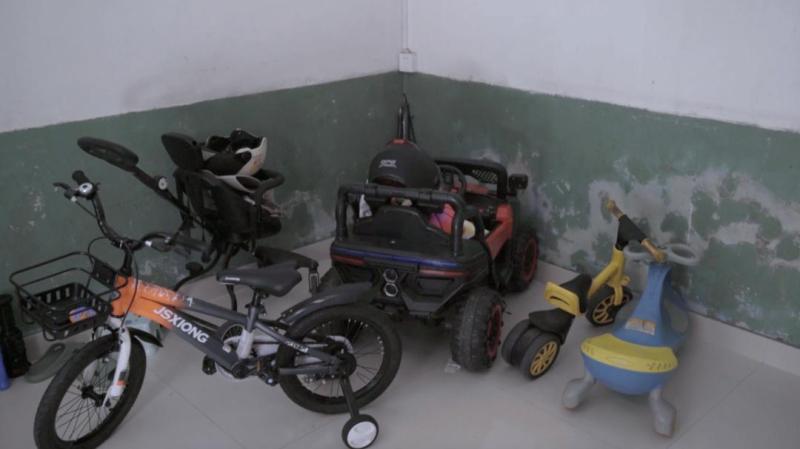 房间的一角放着孙儿的小车。