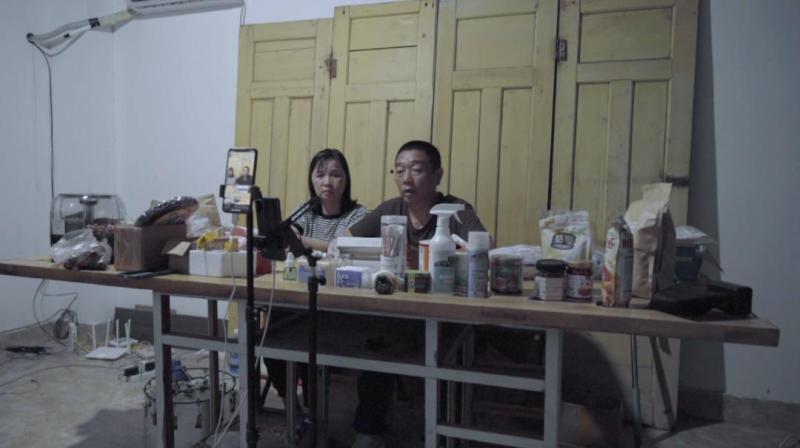 章荣高和叶丽凤在直播间。