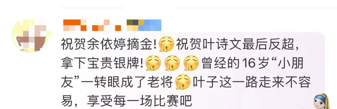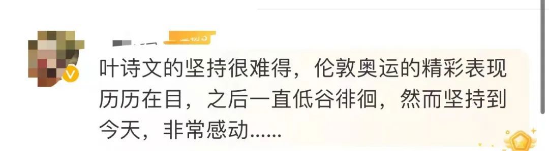 很多网友这样形容观看叶诗文比赛的情绪,也许我们观看27岁的叶诗文比赛,目光不应该局限于金牌,而是她对这项运动的坚持与热爱,像她一样享受比赛。