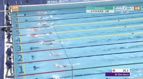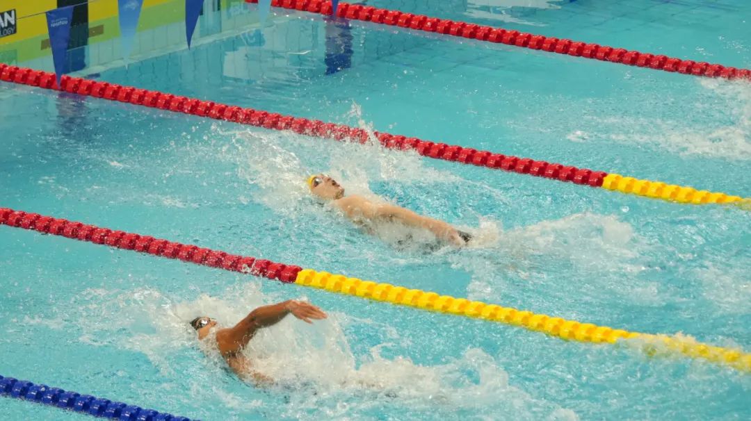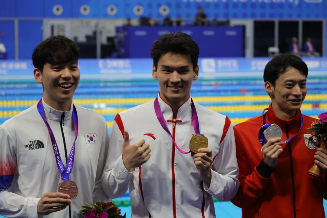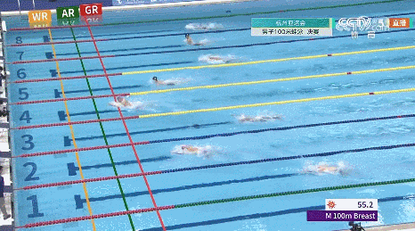 100米蛙泳决赛,中国队覃海洋以57秒76的成绩夺得金牌,并刷新他在今天预赛中刚刚打破的亚运会纪录。另一名中国选手闫子贝摘得银牌。