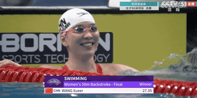 中国队选手汪雪儿在女子50米仰泳决赛中以27秒35夺得冠军。万乐天以27秒41摘银。