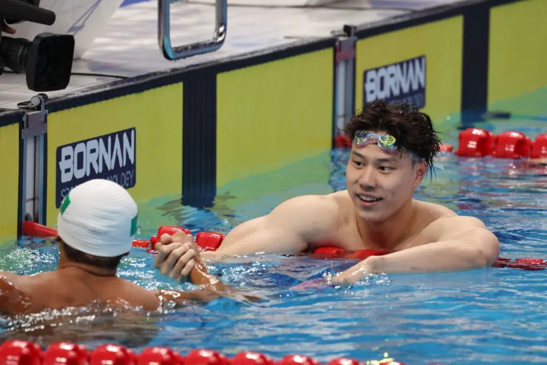 中国队选手徐嘉余在男子50米仰泳决赛中以24秒38夺得冠军,成功卫冕!王谷开来以24秒88夺得银牌。