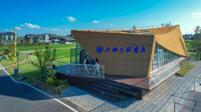 在七十二家理想村,以“始于江浪,融于稻浪”为设计理念的风物满仓,引人关注,属于必“打卡”点。走到近处可以发现,这里是七十二家理想村联合上海三联书店携手打造的特色稻田阅读场景,设有阅读休闲、咖啡水饮、亲子互动、文化活动等多功能主题空间。