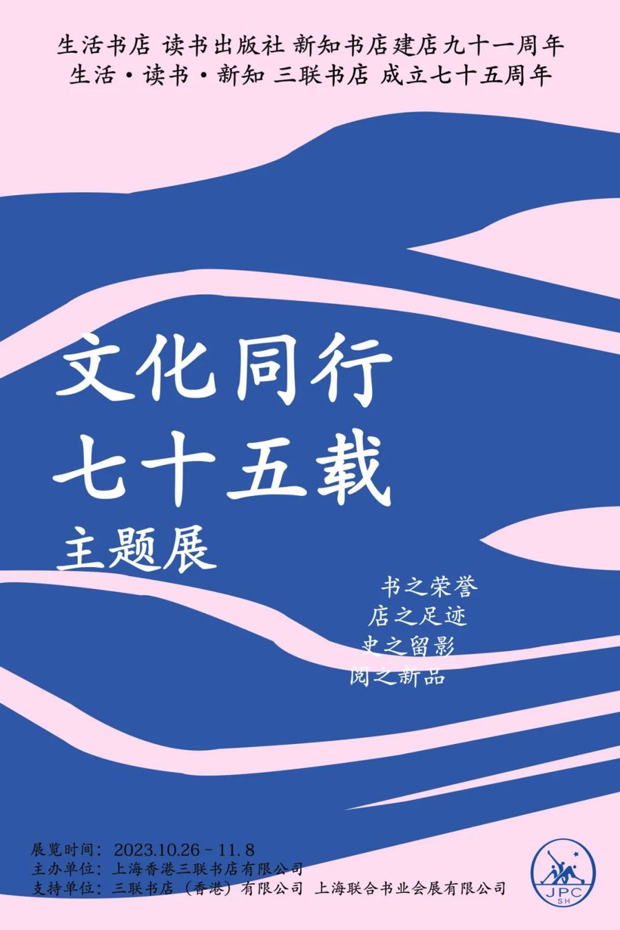 今年是生活书店、读书出版社、新知书店建店91周年暨生活·读书·新知三联书店成立75周年,由上海香港三联书店有限公司主办,三联书店(香港)有限公司、上海联合书业会展有限公司支持的“文化同行七十五载”主题展10月26日起在淮海中路624号上海香港三联书店举办。展览通过“书之荣誉”“店之足迹”“史之留影”“阅之新品”等四个篇章回望过去、致敬前辈、阅读生活。