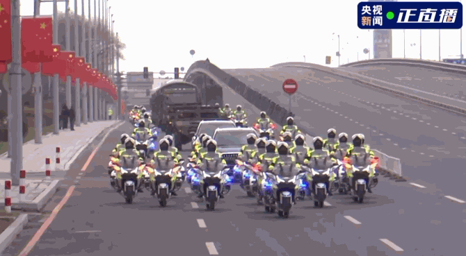 △骑警车队护送烈士遗骸棺椁前往沈阳抗美援朝烈士陵园。